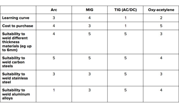 Choosing a welding process The reasons for choosing arc, MIG, TIG or oxy-acetylene welding will vary depending on your needs, but here is my summary of the pros and cons of each from my own experience—specifically related to custom motorcycle projects. (One is the lowest rating, and five is the best.)
